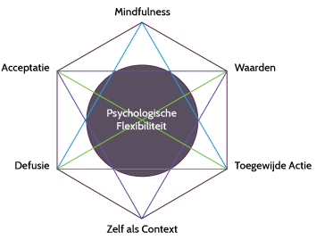 ACT bestaat uit een zestal verschillende processen/vaardigheden, deze worden uitgebeeld in het ACT-hexaflex: